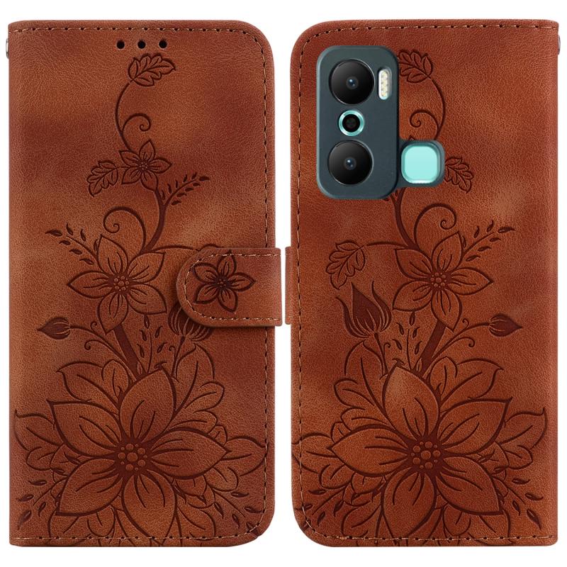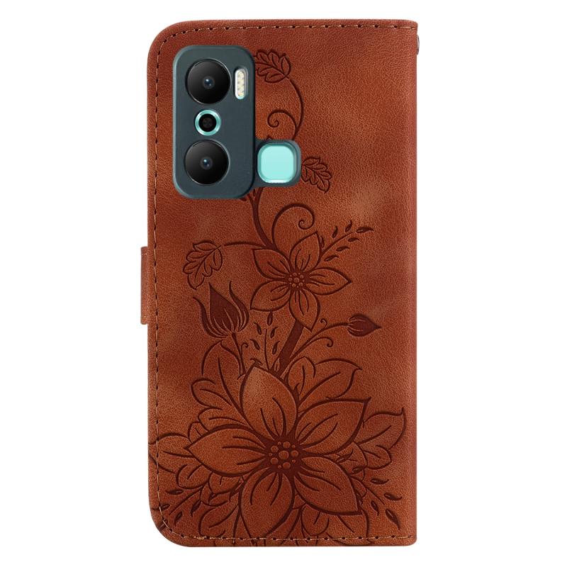For Infinix Hot 20 Play Lily Embossed Leather Phone Case(Brown)