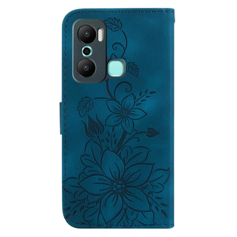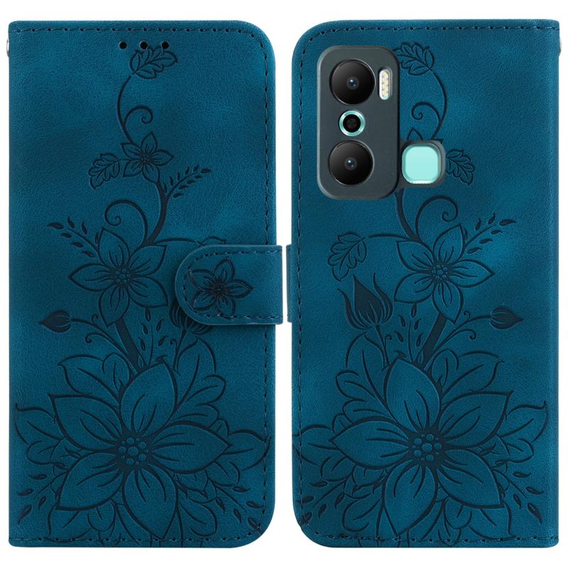 For Infinix Hot 20 Play Lily Embossed Leather Phone Case(Dark Blue)