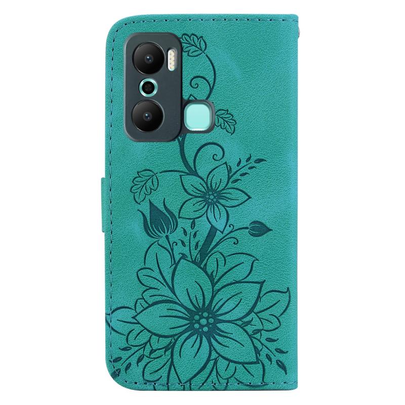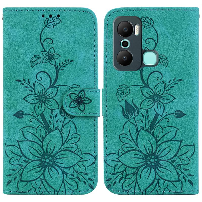 For Infinix Hot 20 Play Lily Embossed Leather Phone Case(Green)