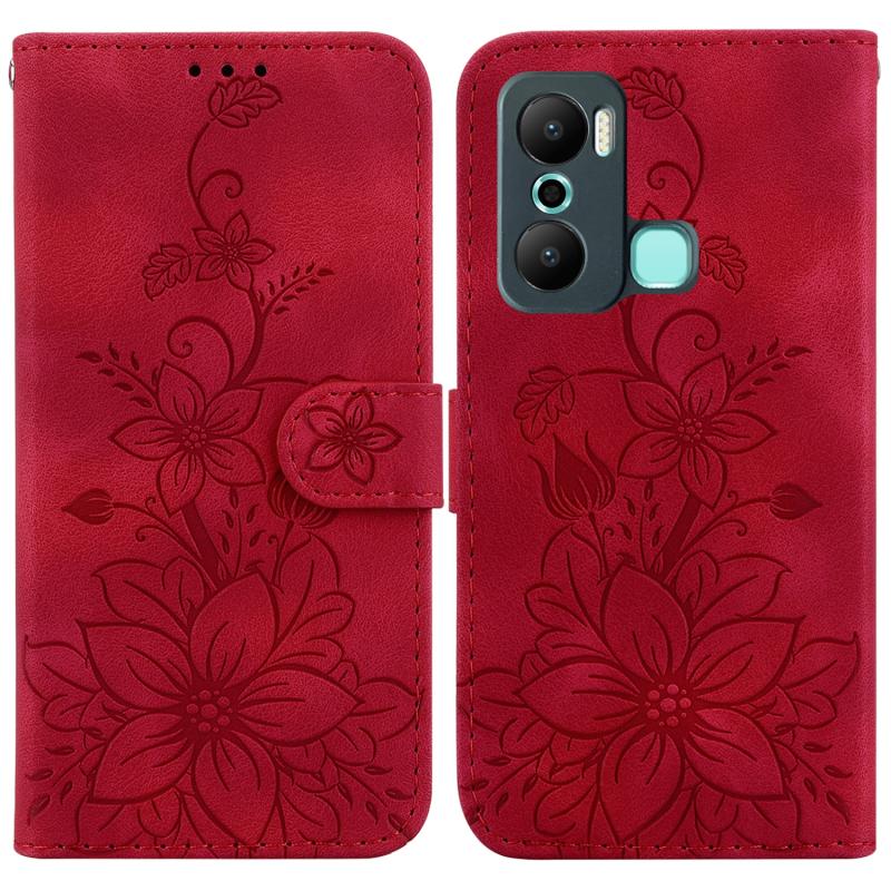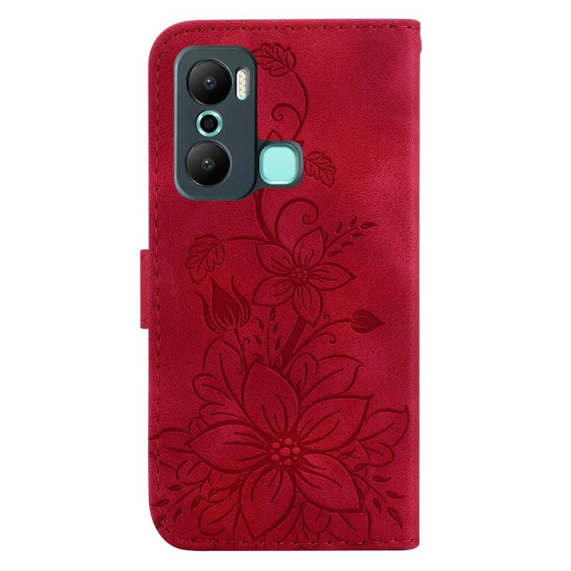 For Infinix Hot 20 Play Lily Embossed Leather Phone Case(Red)