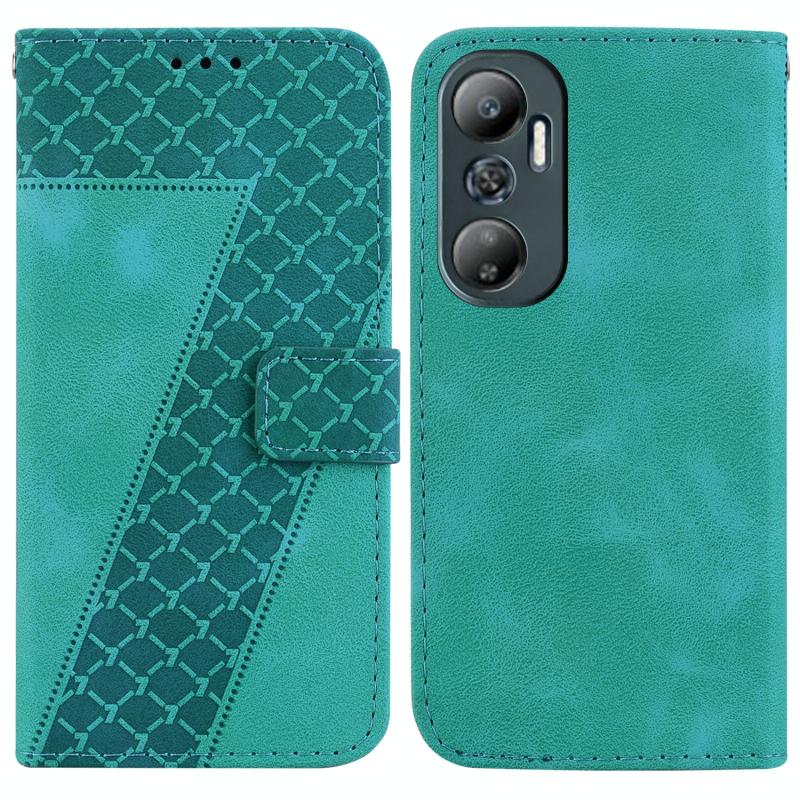 For Infinix Hot 20 Seven-shaped Embossed Leather Phone Case(Green)