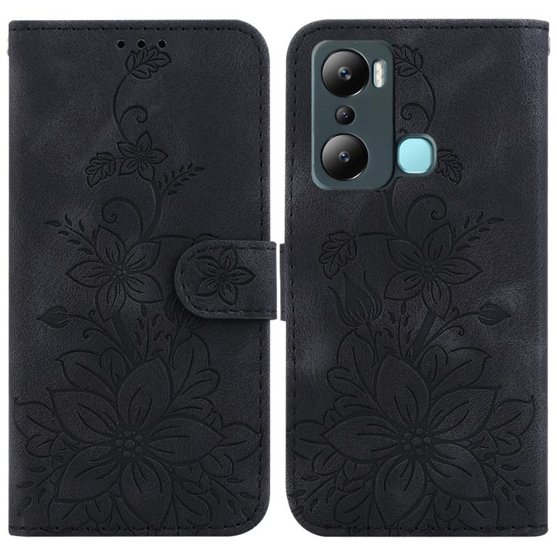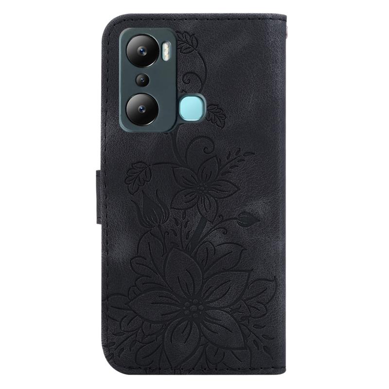 For Infinix Hot 20i Lily Embossed Leather Phone Case(Black)