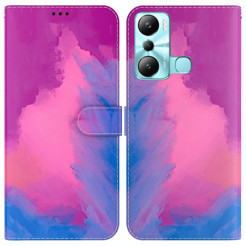 For Infinix Hot 20i Watercolor Pattern Leather Phone Case(Purple Red)