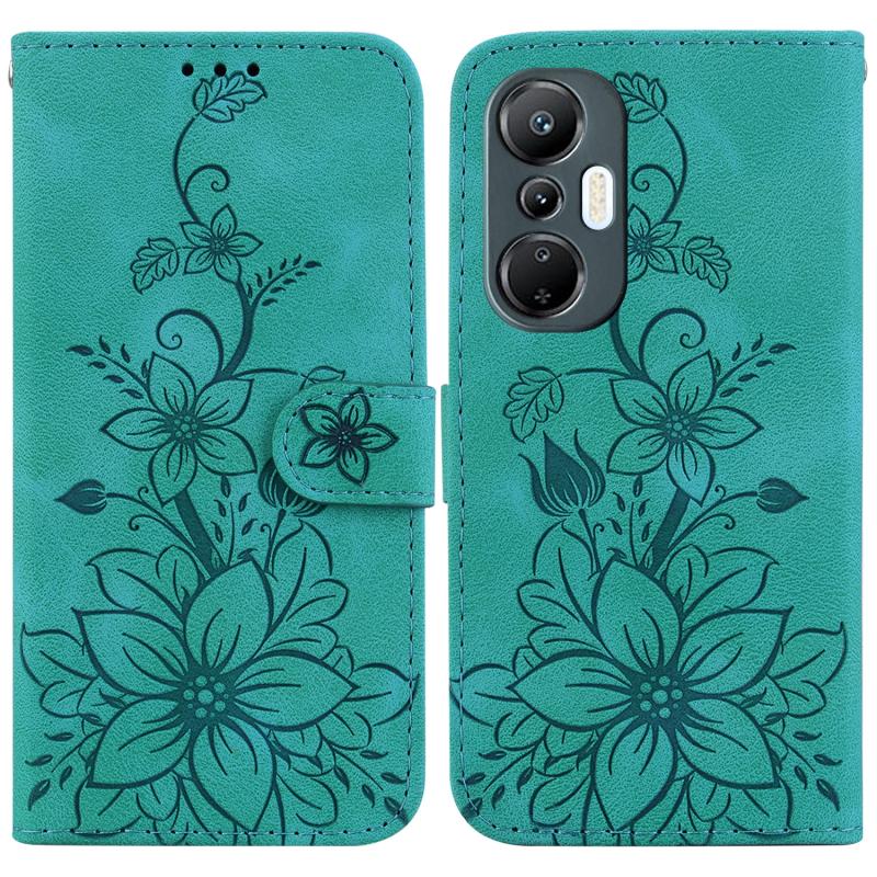 For Infinix Hot 20S Lily Embossed Leather Phone Case(Green)