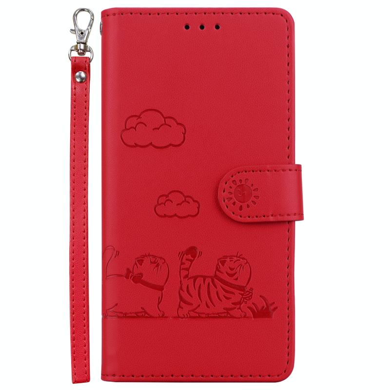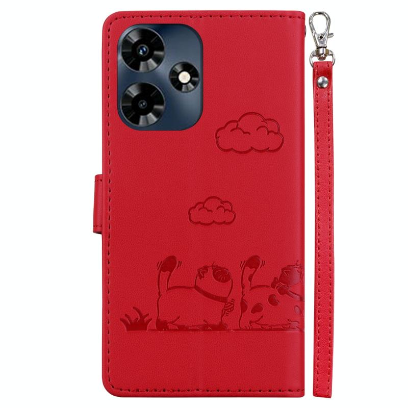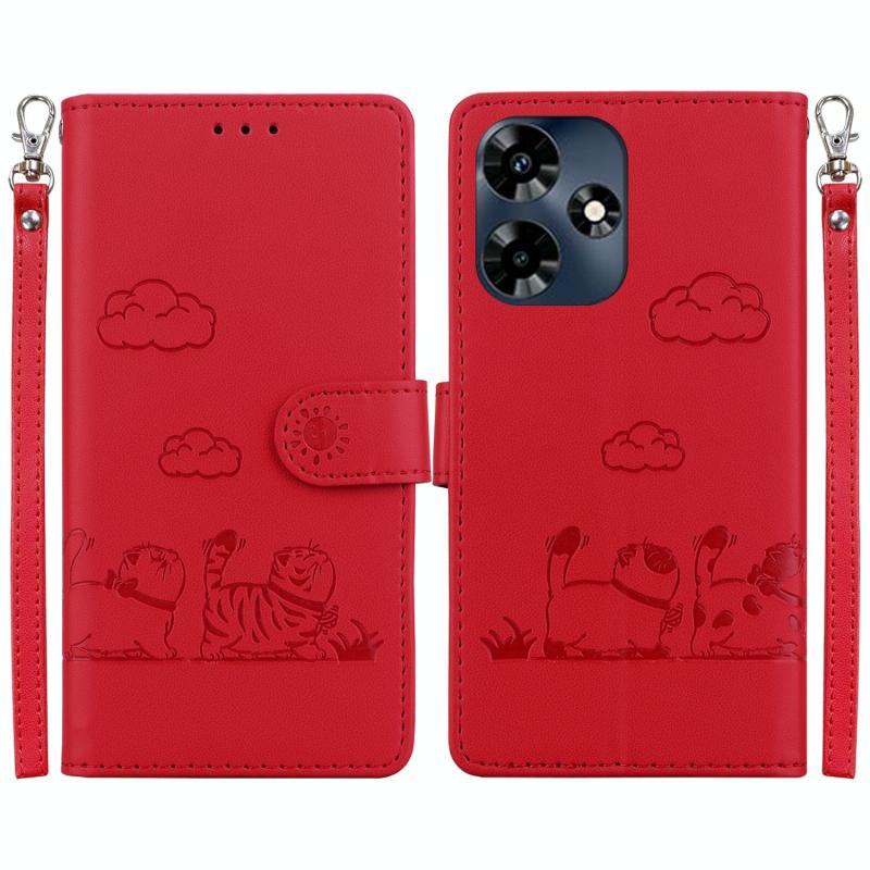 For Infinix Hot 30 4G Cute Cats RFID Leather Phone Case(Red)
