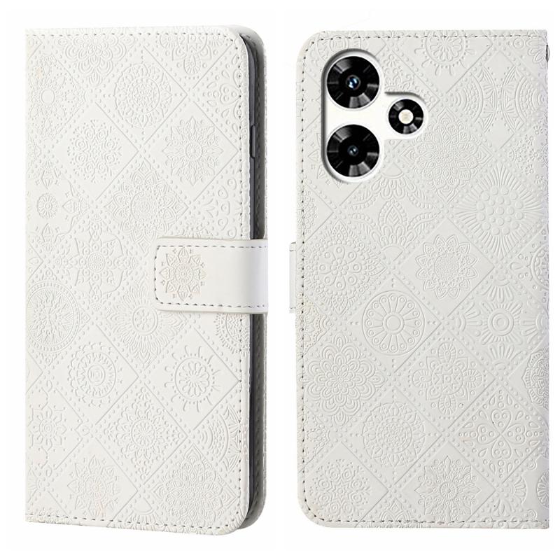 For Infinix Hot 30 4G Ethnic Style Embossed Pattern Leather Phone Case(White)