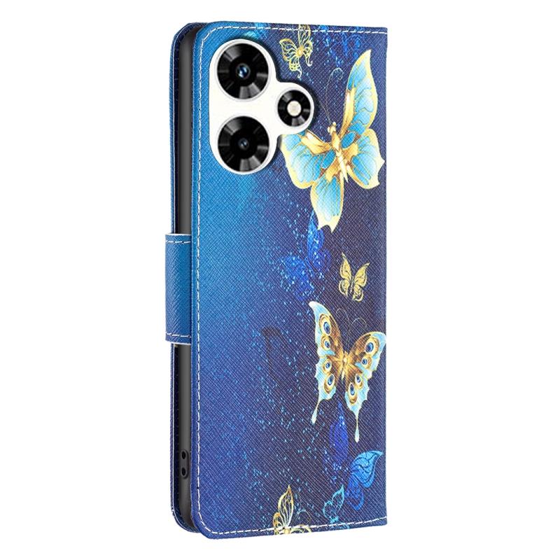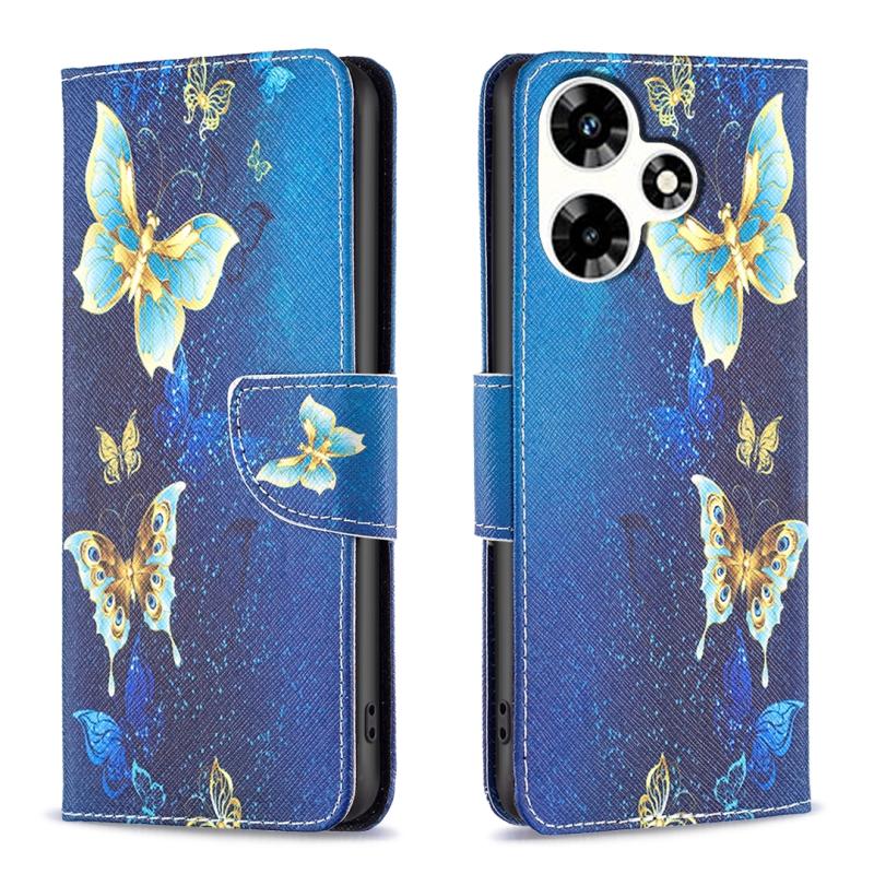 For Infinix Hot 30 Colored Drawing Pattern Leather Phone Case(Gold Butterfly)