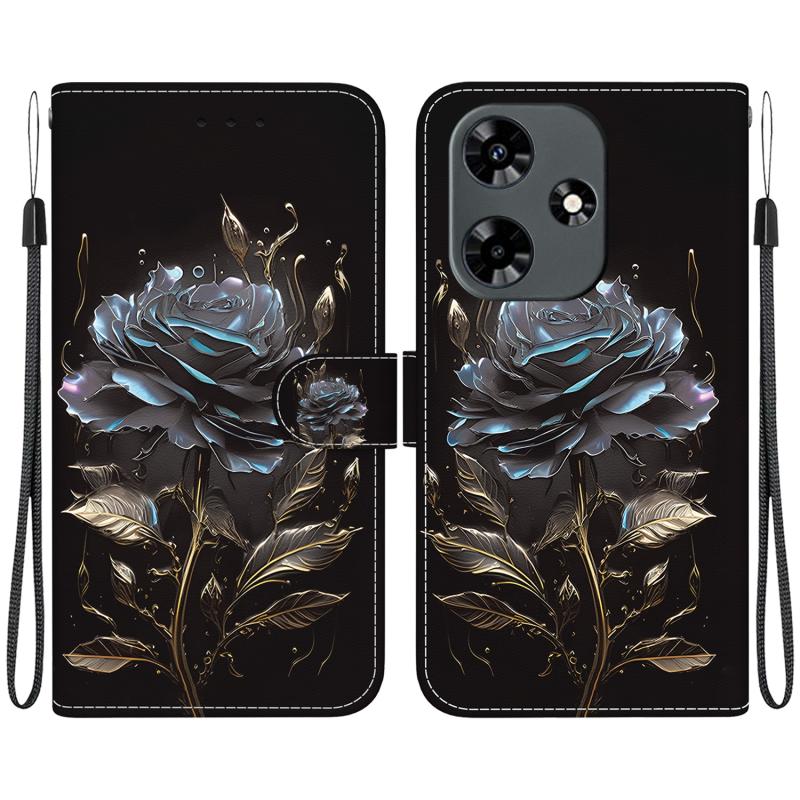 For Infinix Hot 30 Crystal Texture Colored Drawing Leather Phone Case(Black Rose)