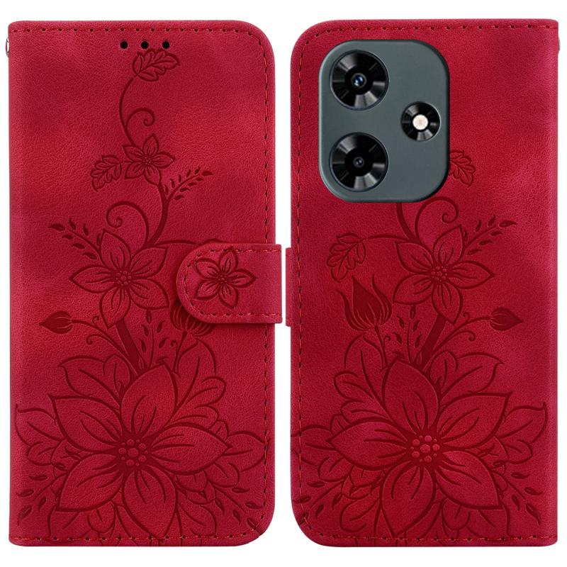For Infinix Hot 30 Lily Embossed Leather Phone Case(Red)