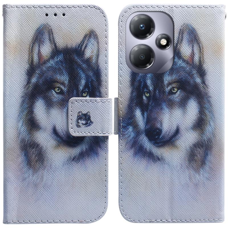 For Infinix Hot 30 Play Coloured Drawing Flip Leather Phone Case(White Wolf)