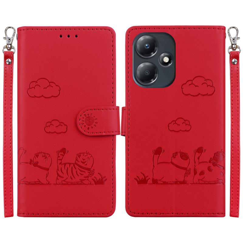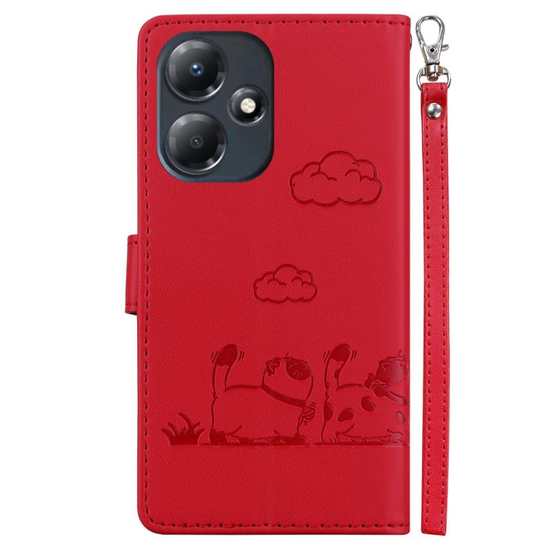 For Infinix Hot 30 Play Cute Cats RFID Leather Phone Case(Red)