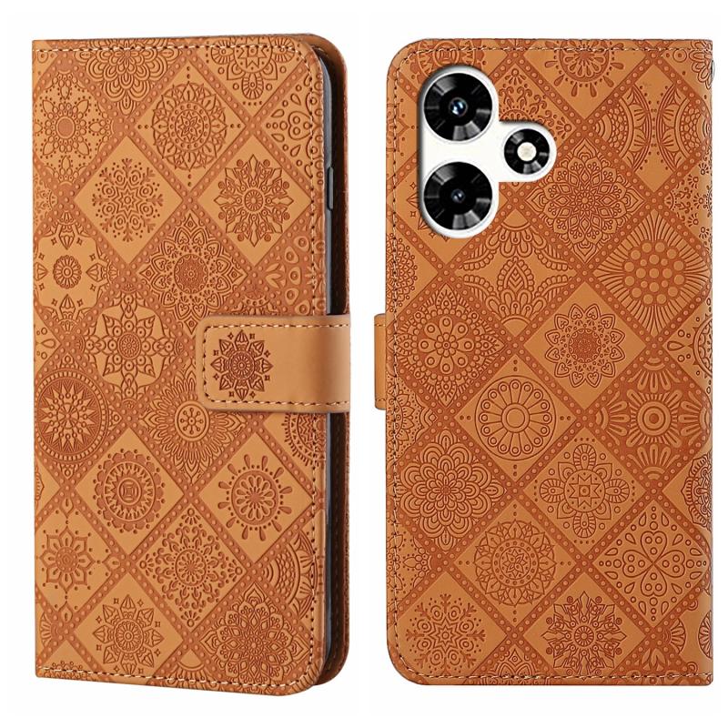 For Infinix Hot 30 Play NFC Ethnic Style Embossed Pattern Leather Phone Case(Brown)