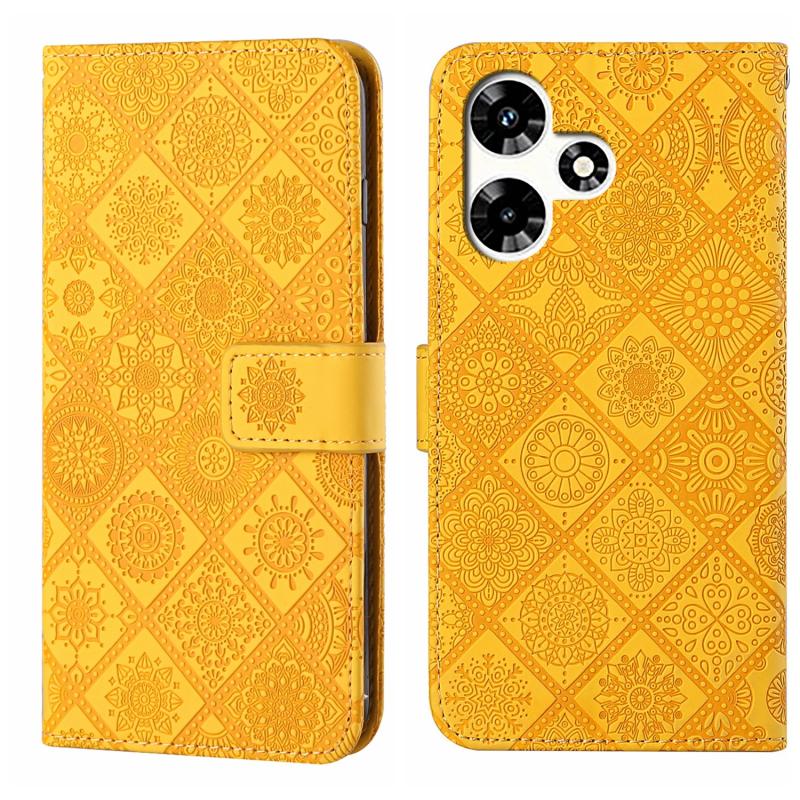For Infinix Hot 30 Play NFC Ethnic Style Embossed Pattern Leather Phone Case(Yellow)