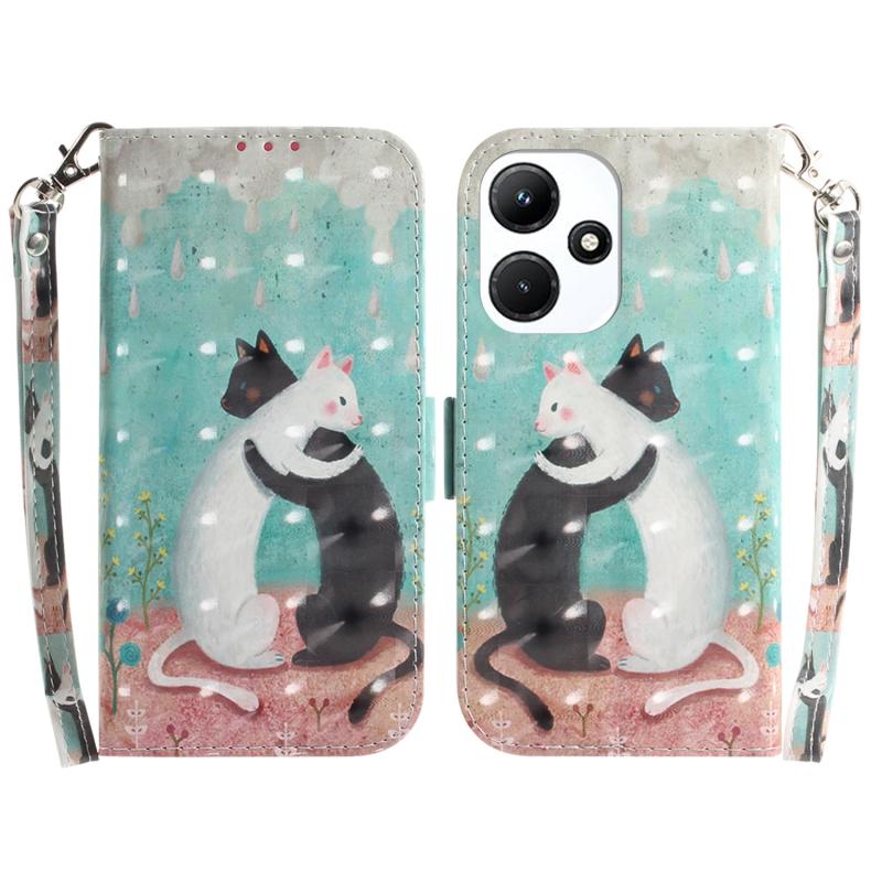 For Infinix Hot 30i 3D Colored Horizontal Flip Leather Phone Case(Black White Cat)