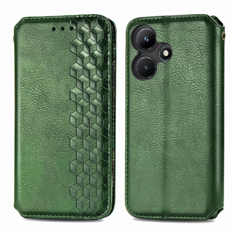 For Infinix Hot 30i Cubic Grid Pressed Magnetic Leather Phone Case(Green)