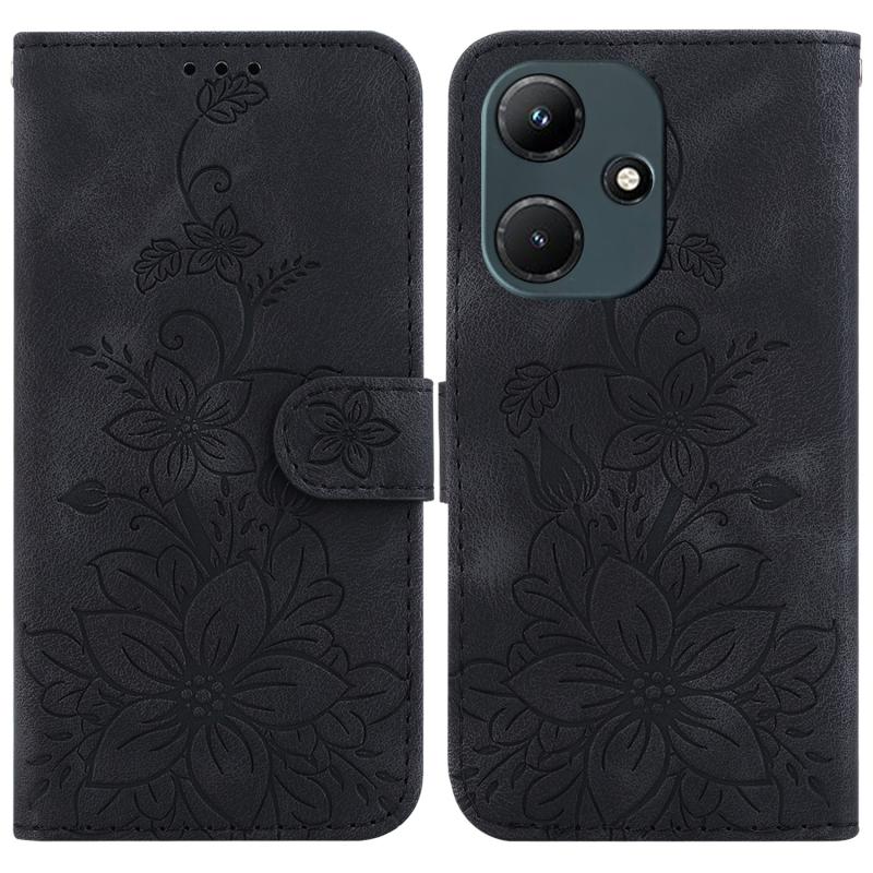 For Infinix Hot 30i / X669C Lily Embossed Leather Phone Case(Black)