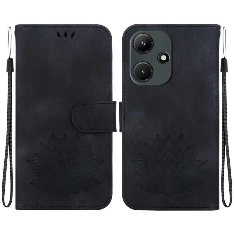 For Infinix Hot 30i X669C Lotus Embossed Leather Phone Case(Black)
