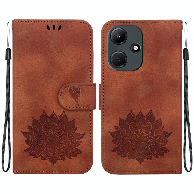 For Infinix Hot 30i X669C Lotus Embossed Leather Phone Case(Brown)