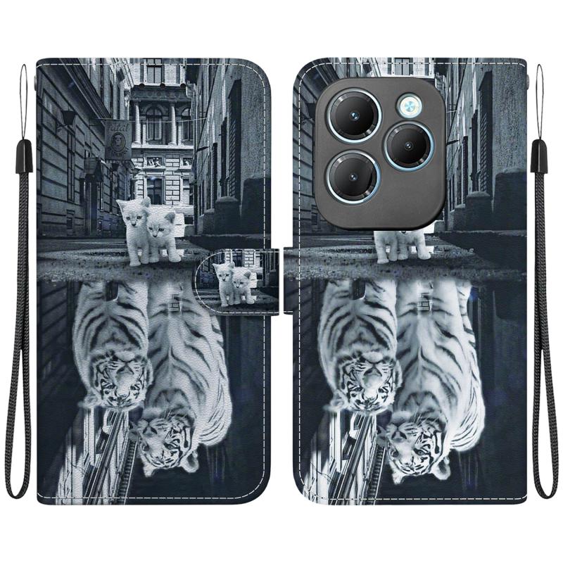 For Infinix Hot 40 / 40 Pro Crystal Texture Colored Drawing Leather Phone Case(Cat Tiger Reflection)
