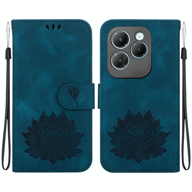 For Infinix Hot 40 / 40 Pro Lotus Embossed Leather Phone Case(Dark Blue)