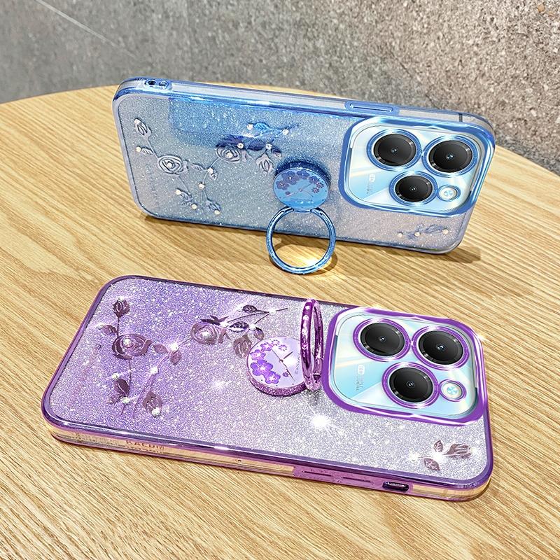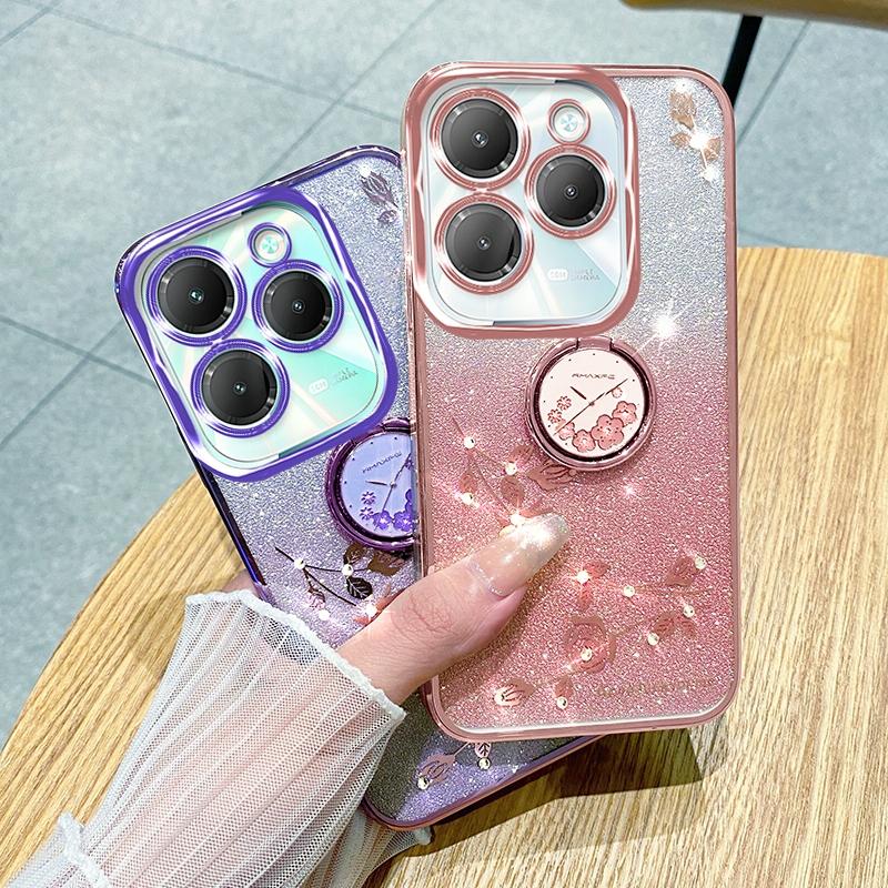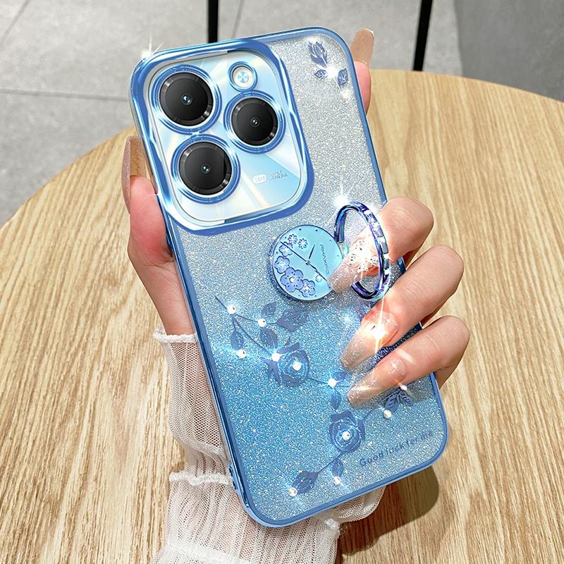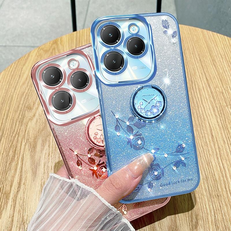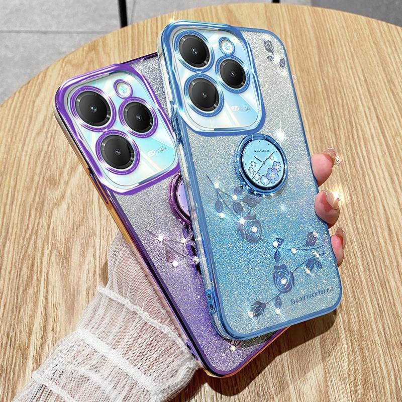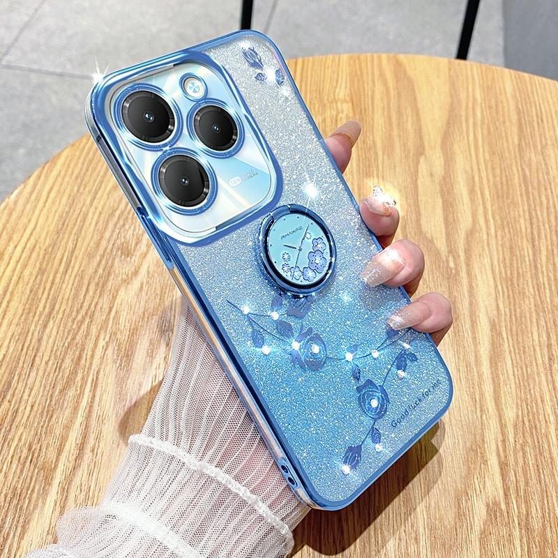 For Infinix Hot 40 Gradient Glitter Immortal Flower Ring All-inclusive Phone Case(Blue)