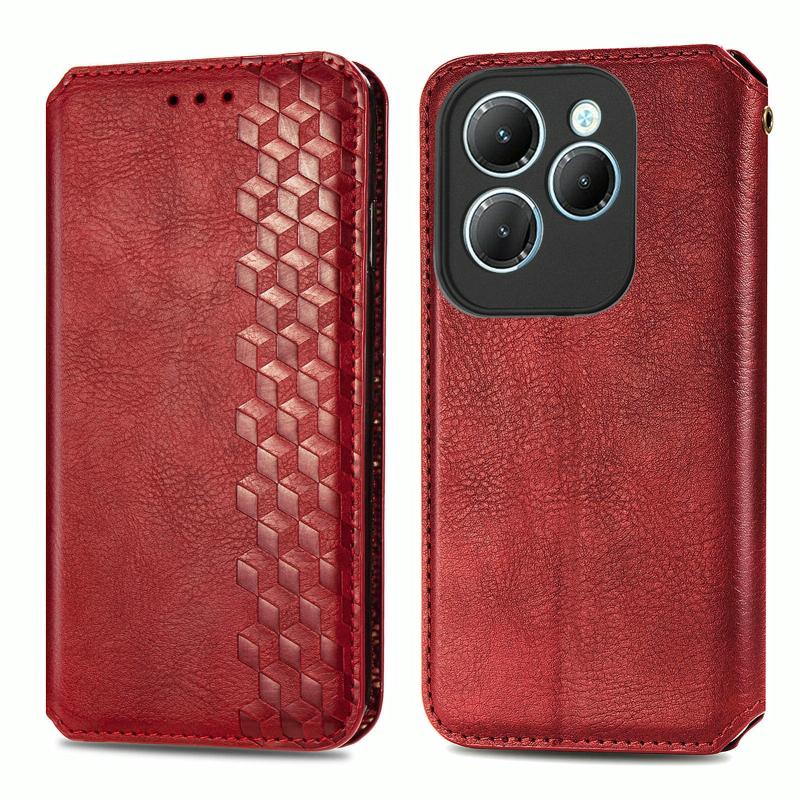 For Infinix Hot 40 Pro Cubic Grid Pressed Magnetic Leather Phone Case(Red)