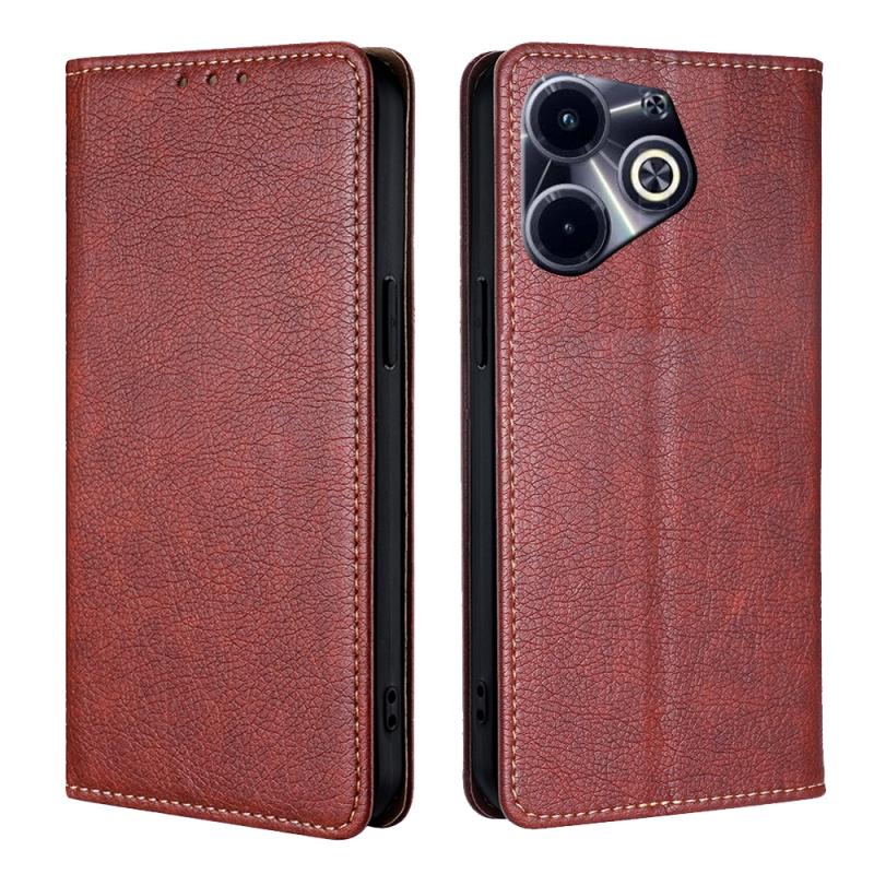 For Infinix Hot 40i Gloss Oil Solid Color Magnetic Leather Phone Case(Brown)