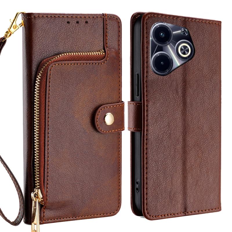 For Infinix Hot 40i Zipper Bag Leather Phone Case(Brown)
