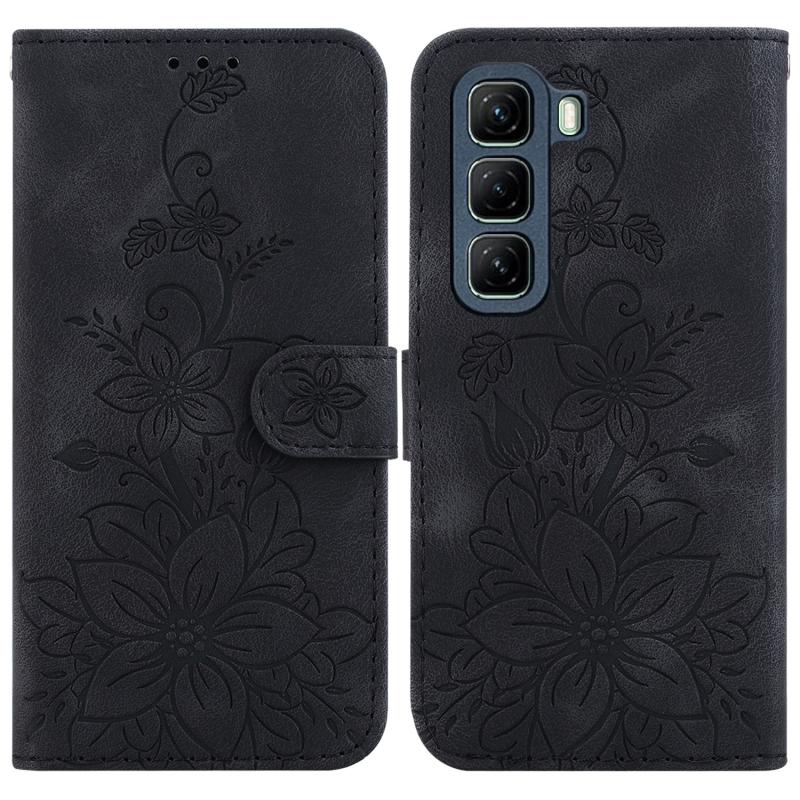 For Infinix Hot 50 4G Lily Embossed Leather Phone Case(Black)