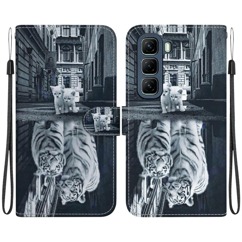 For Infinix Hot 50 5G Crystal Texture Colored Drawing Leather Phone Case(Cat Tiger Reflection)