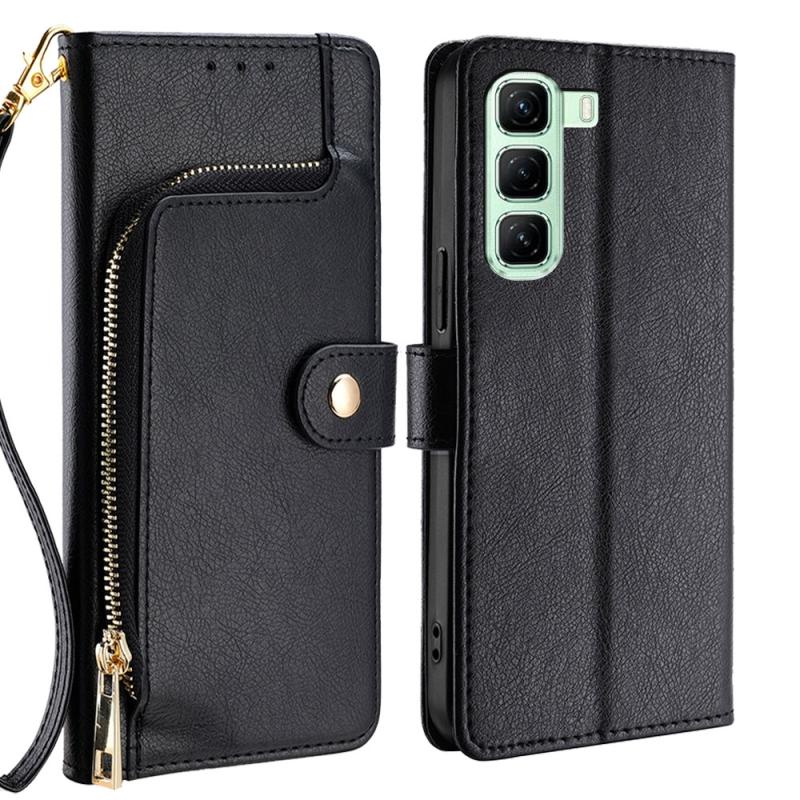 For Infinix Hot 50 5G Zipper Bag Leather Phone Case(Black)