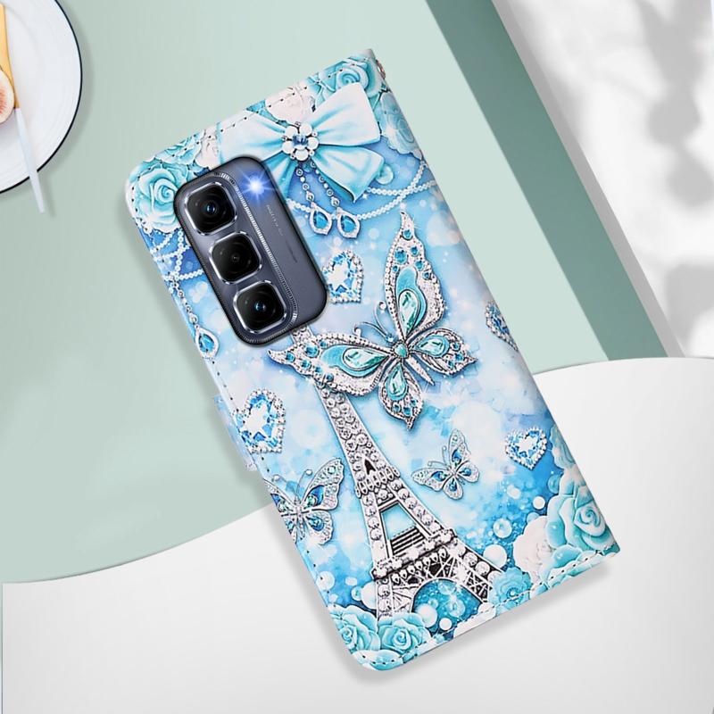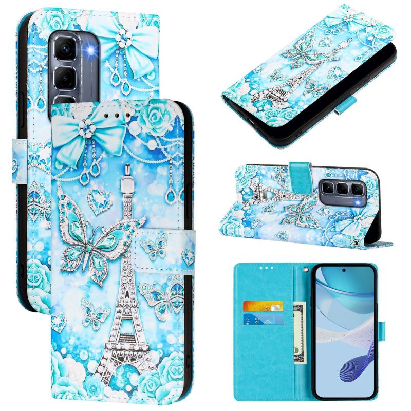 For Infinix Hot 50 Pro+ 4G Colored Drawing Pattern Plain Weave Leather Phone Case(Tower Butterfly)