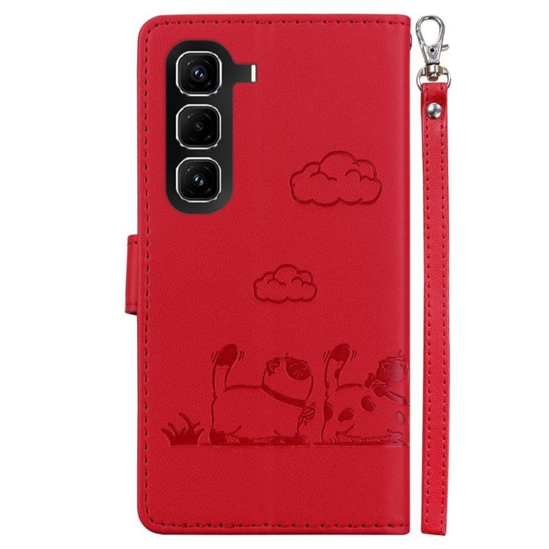 For Infinix Hot 50 Pro+ 4G Cute Cats RFID Leather Phone Case(Red)