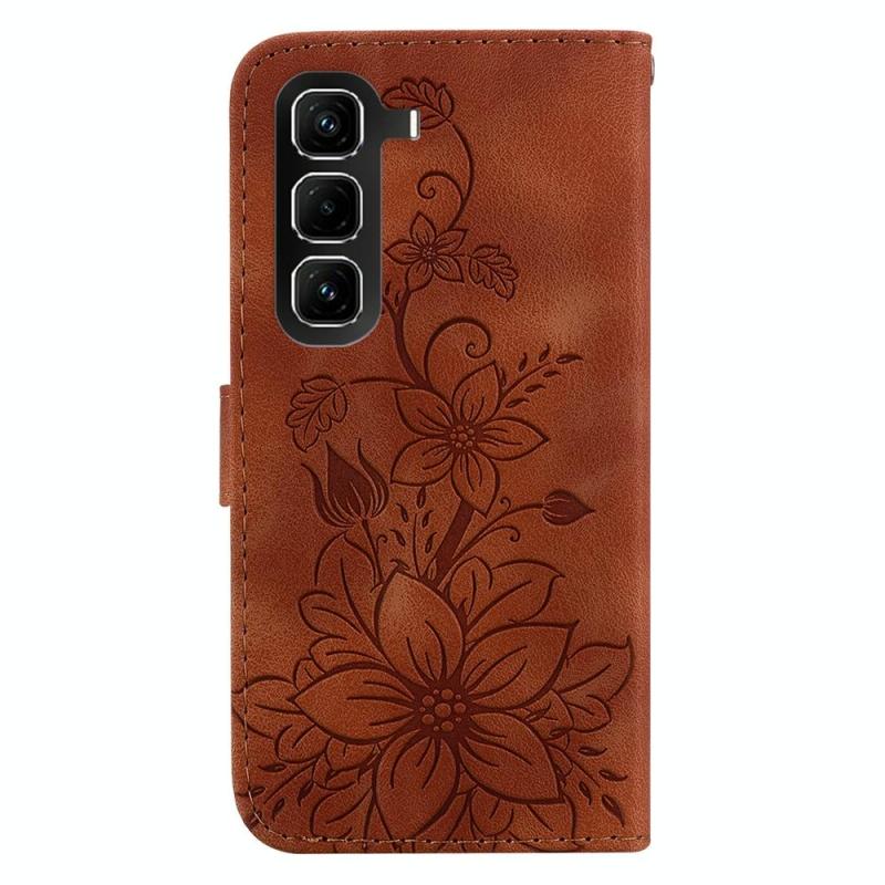 For Infinix Hot 50 Pro+ 4G Lily Embossed Leather Phone Case(Brown)