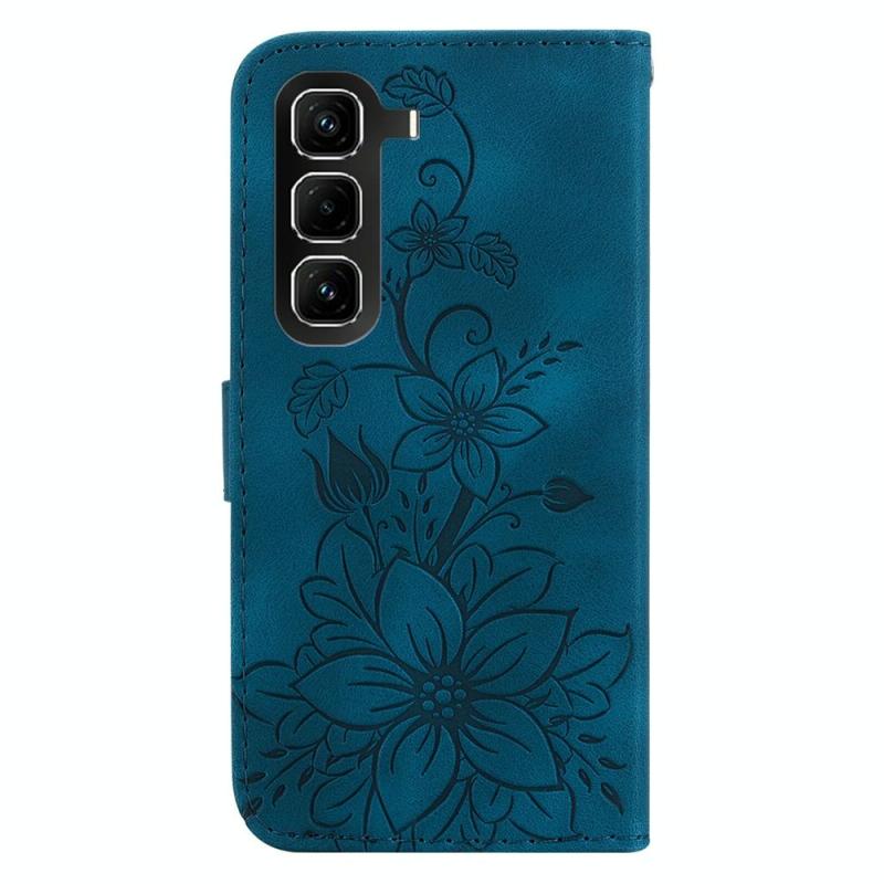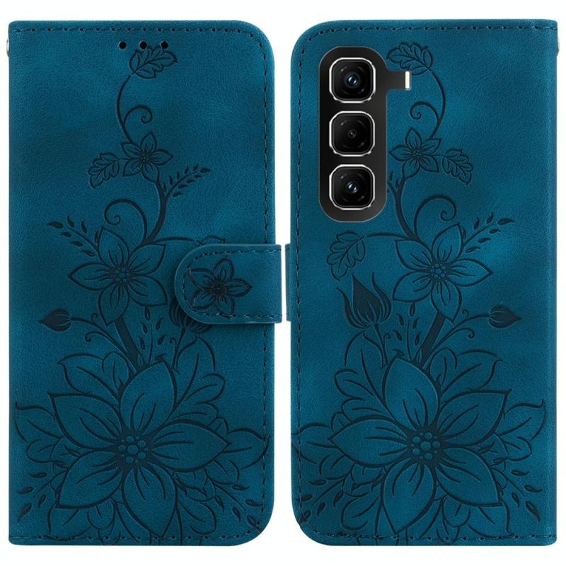 For Infinix Hot 50 Pro+ 4G Lily Embossed Leather Phone Case(Dark Blue)