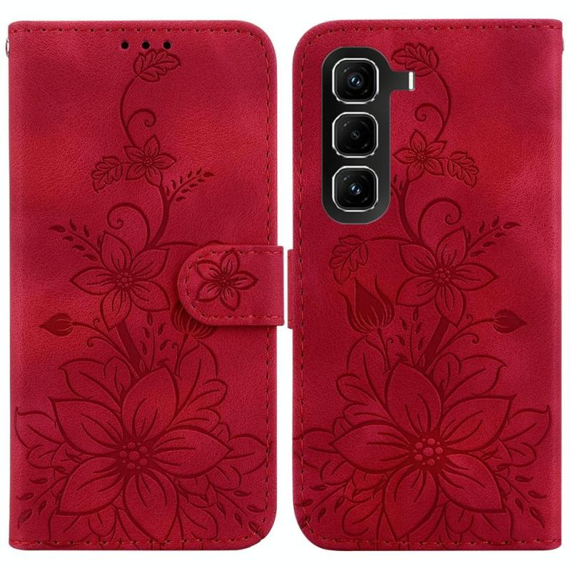 For Infinix Hot 50 Pro+ 4G Lily Embossed Leather Phone Case(Red)