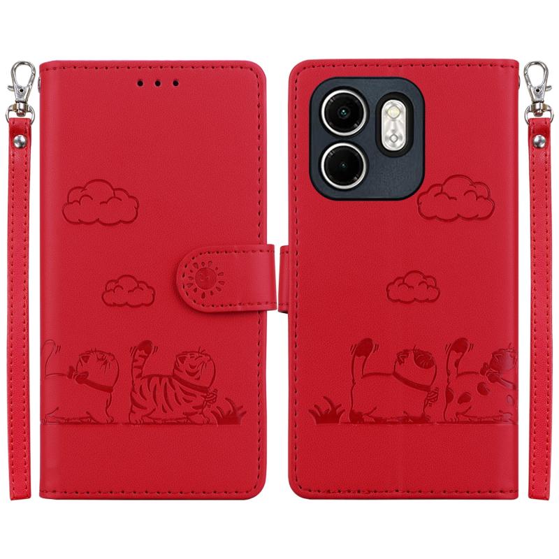 For Infinix Hot 50i / Smart 9 Cute Cats RFID Leather Phone Case(Red)