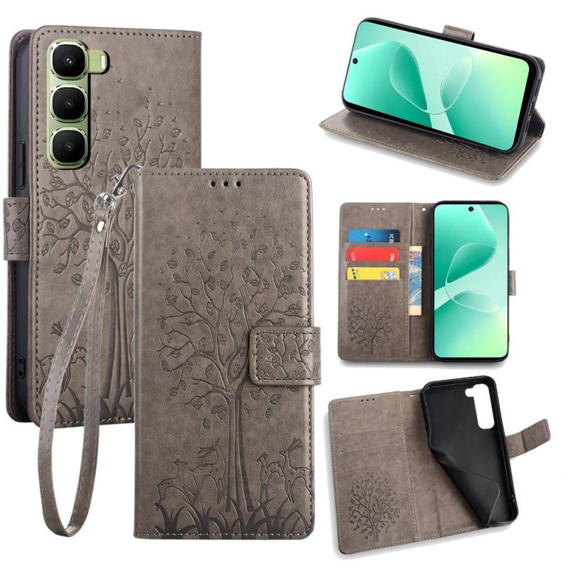 For Infinix Hot 60 5G Tree & Deer Embossed Leather Phone Case(Grey)