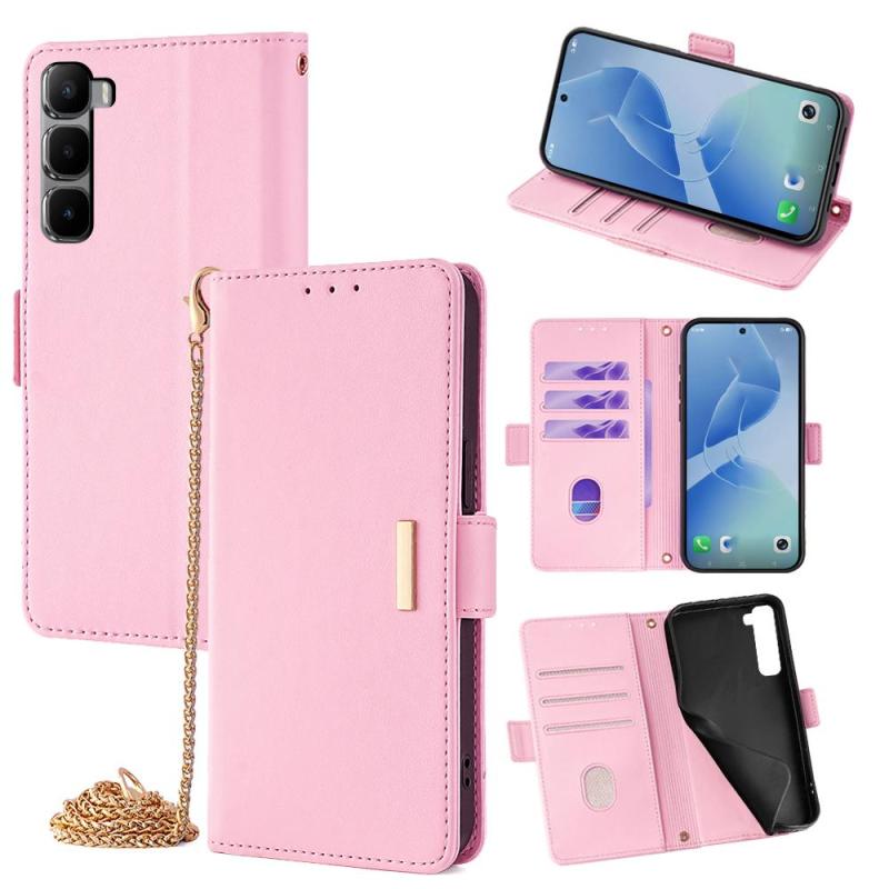 For Infinix Hot 60 Pro 4G Crossbody Chain Leather Phone Case(Pink)