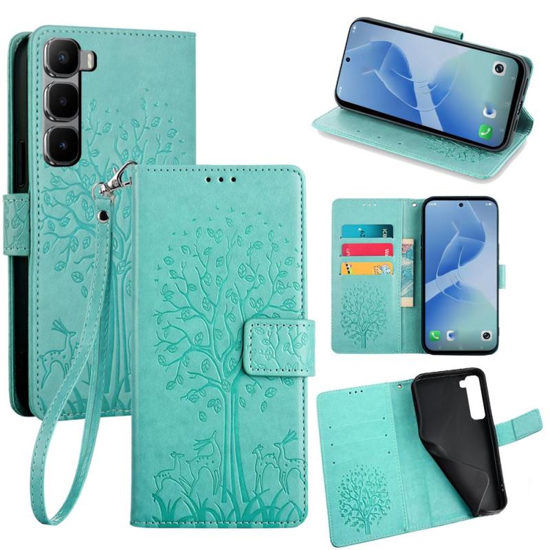 For Infinix Hot 60 Pro 4G Tree & Deer Embossed Leather Phone Case(Green)