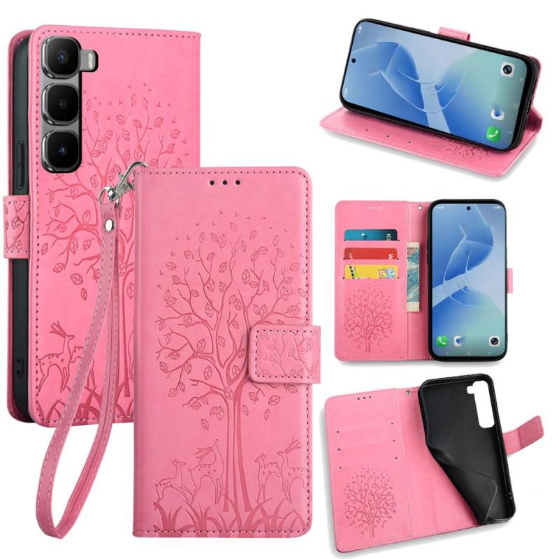 For Infinix Hot 60 Pro+ 4G Tree & Deer Embossed Leather Phone Case(Pink)