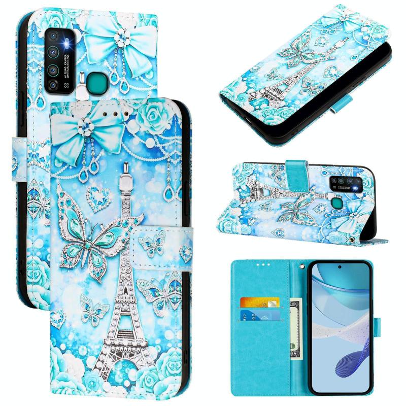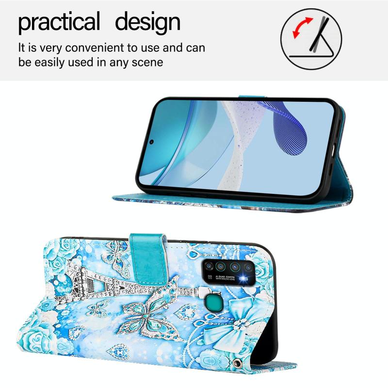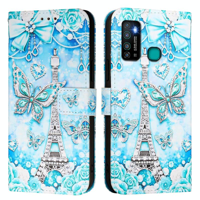 For Infinix Hot 9 / Hot 9 Pro Colored Drawing Pattern Plain Weave Leather Phone Case(Tower Butterfly)