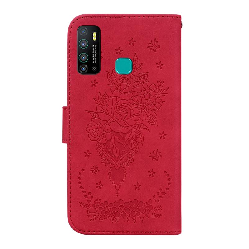 For Infinix Hot 9 X655C / Note 7 Lite Butterfly Rose Embossed Leather Phone Case(Red)