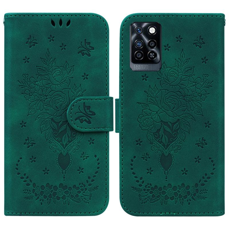 For Infinix Note 10 Pro X695 Butterfly Rose Embossed Leather Phone Case(Green)