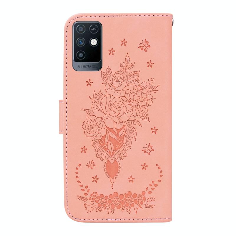 For Infinix Note 10 X693 Butterfly Rose Embossed Leather Phone Case(Pink)