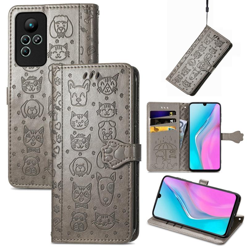 For Infinix Note 11 Cute Cat and Dog Embossed Leather Phone Case(Gray)