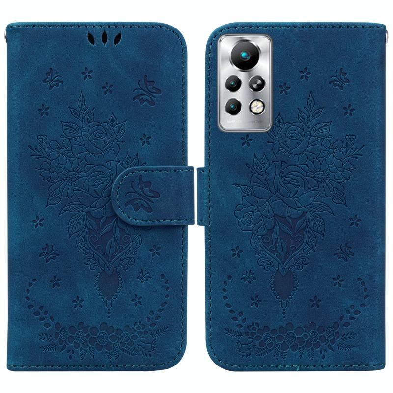For Infinix Note 11 Pro / Note 11s Butterfly Rose Embossed Leather Phone Case(Blue)