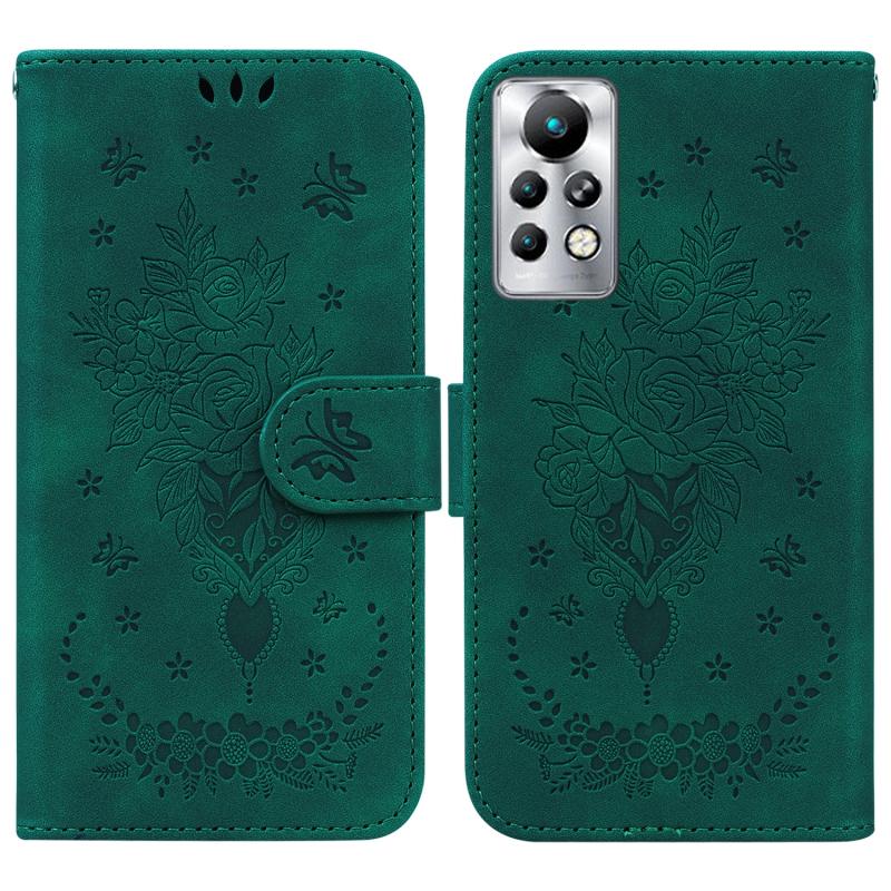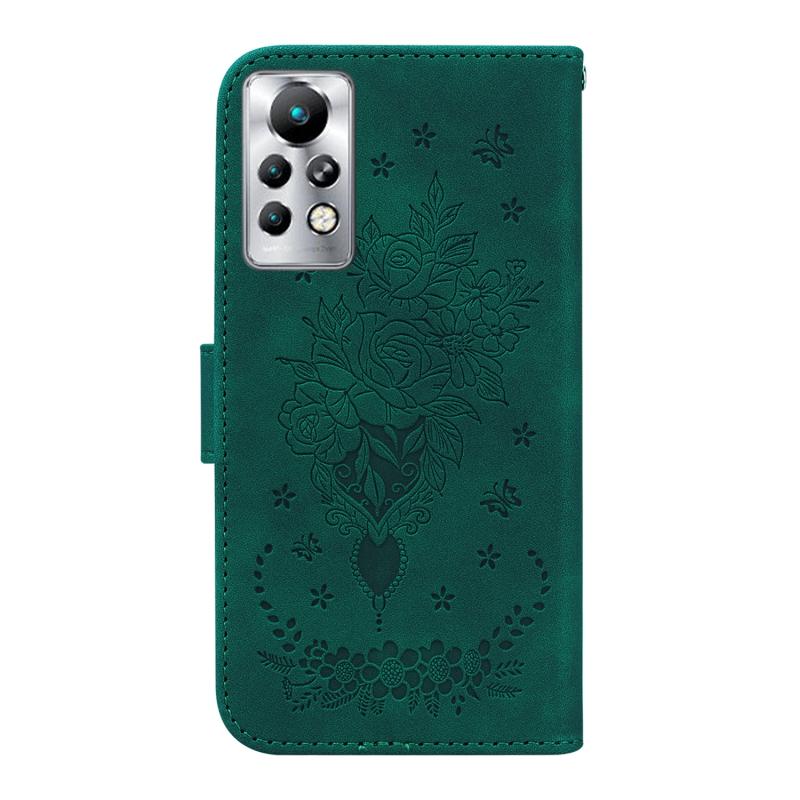 For Infinix Note 11 Pro / Note 11s Butterfly Rose Embossed Leather Phone Case(Green)