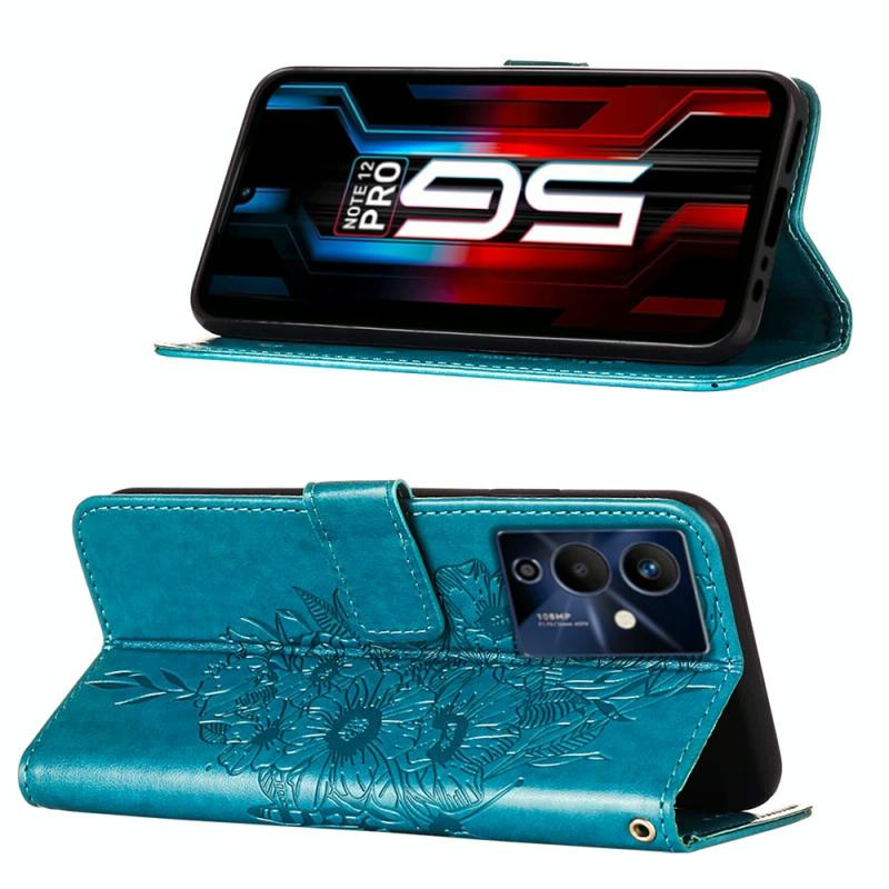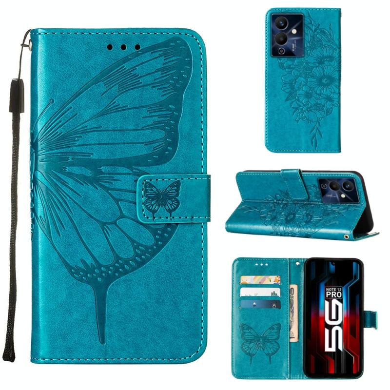 For Infinix Note 12 Pro 5G Embossed Butterfly Flip Leather Phone Case(Blue)