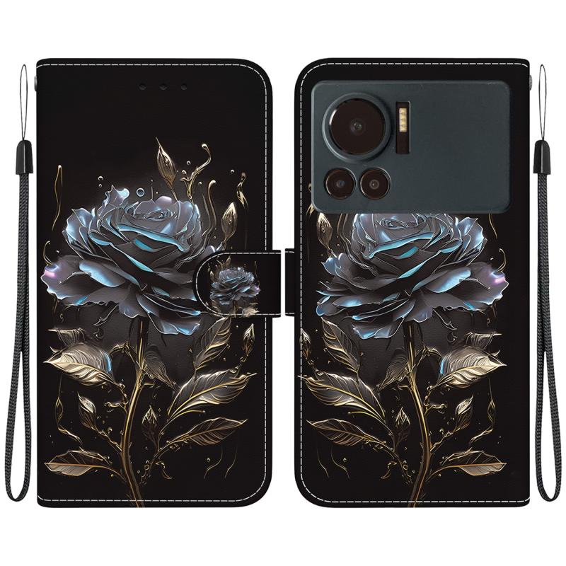 For Infinix Note 12 VIP Crystal Texture Colored Drawing Leather Phone Case(Black Rose)